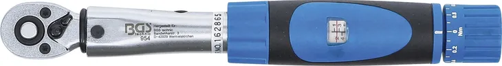 - Grzechotka przełączalna z mechanizmem szybkiegozwalniania nasadek- Sygnał kliknięcia po osiągnięciu wcześniej ustawionejwartości momentu obrotowego- wyzwalanie prawostronne- Dokładność: +/- 4 %- Z certyfikatem kalibracji Klucz dynamometryczny6,3 mm (1/4)1 - 6 Nm