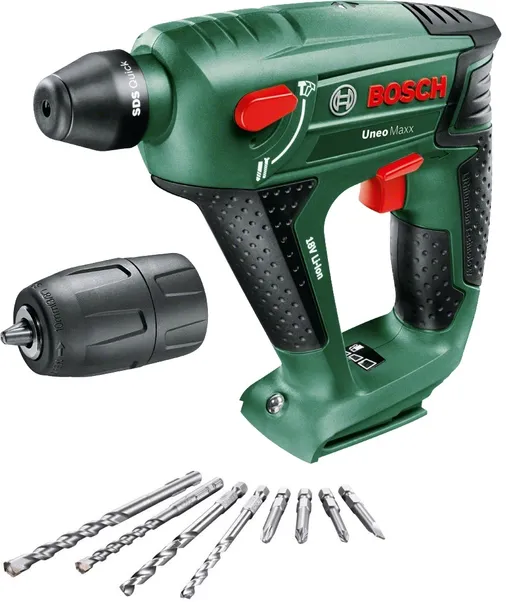 Wydajny i kompaktowy, akumulatorowy młot udarowo-obrotowy Uneo Maxx 3 w 1 został zaprojektowany do najtrudniejszych prac związanych z wierceniem z udarem, wierceniem i wkręcaniem w betonie, murze, metalu, drewnie i płytkach ceramicznych. Pneumatyczny mechanizm udarowy Bosch oraz mocny silnik umożliwiają łatwe i szybkie wiercenie otworów o średnicy do 10 mm w betonie. Narzędzie posiada uchwyt SDS, który umożliwia intuicyjną obsługę i szybką wymianę osprzętu z chwytem sześciokątnym 1/4 oraz SDS quick w ciągu 3 sekund. To lekkie (1,4 kg), kompaktowe i wydajne narzędzie zapewnia komfortową obsługę w miejscach trudno dostępnych, z łatwością radząc sobie z każdym projektem: od wiercenia w betonie do precyzyjnego wkręcania w drewnie.