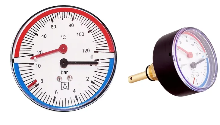 Termomanometr Afriso TM 80 z podłączeniem tylnym i metalową obudową